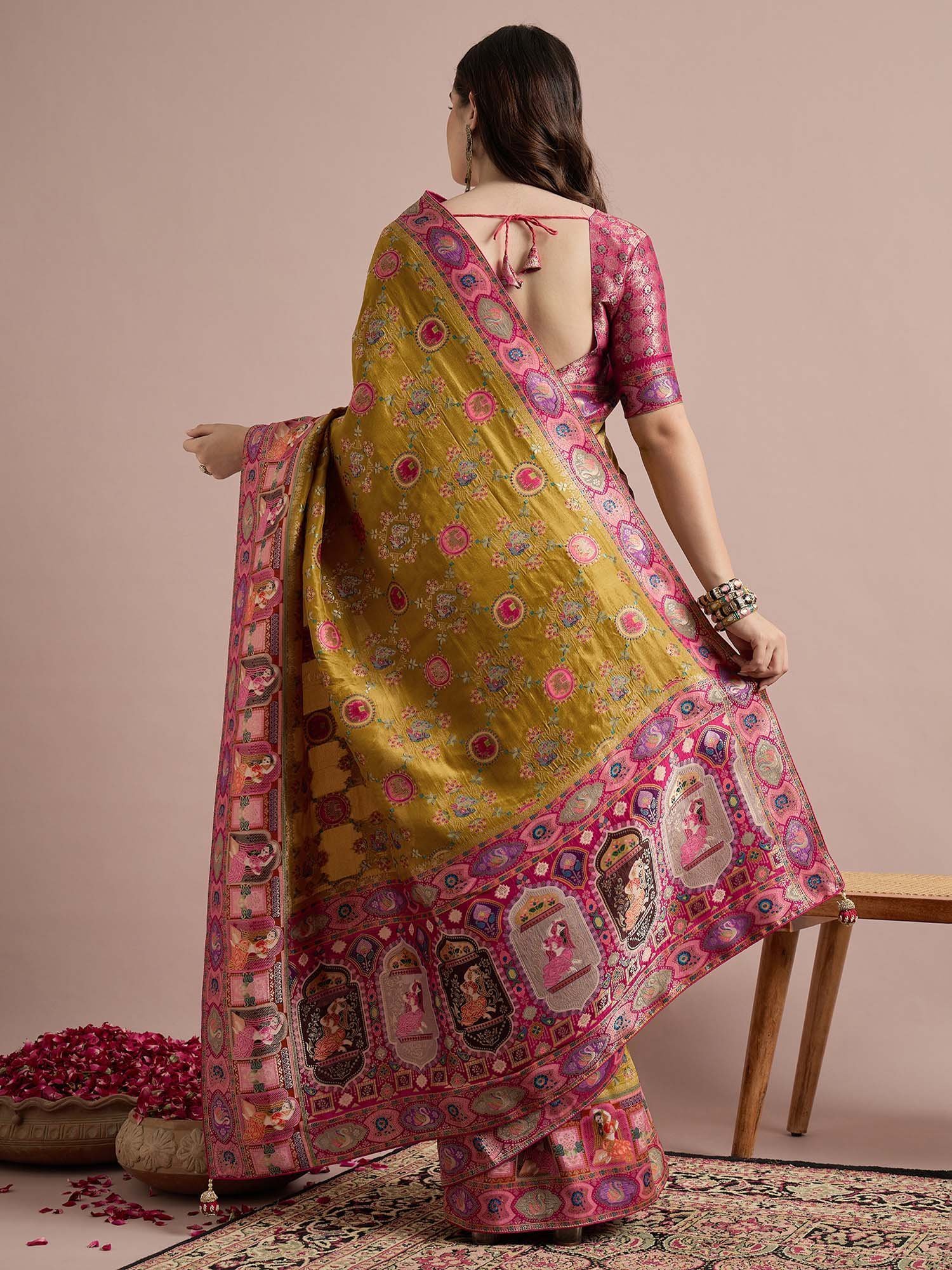 Mustard Woven Viscose Saree with Unstitched Blouse