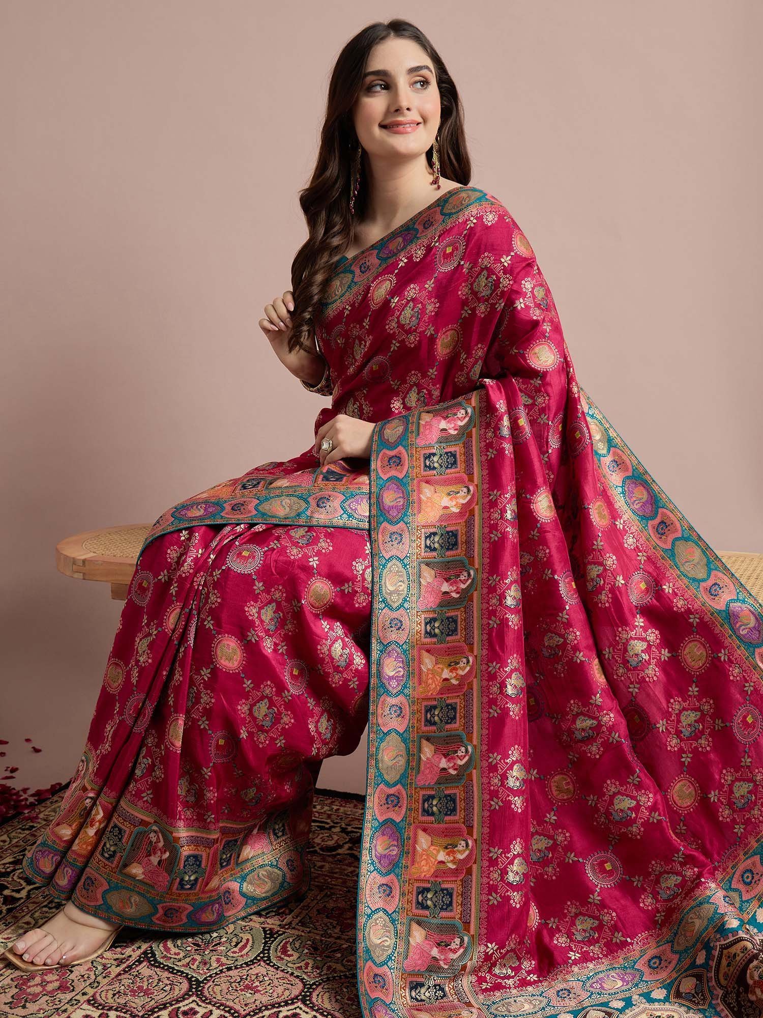 Pink Woven Viscose Saree with Unstitched Blouse