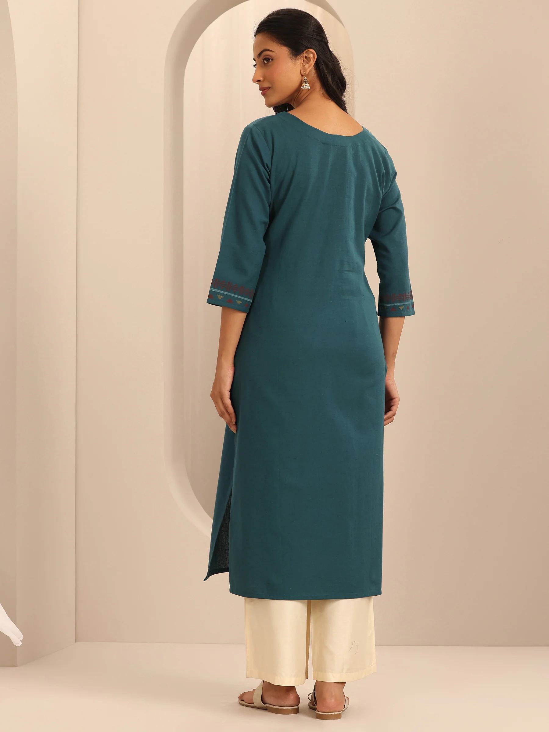 Teal Printed Cotton Blend Straight Kurta