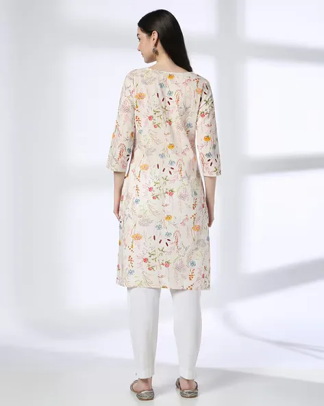 Women Floral Print Cotton Straight Kurta