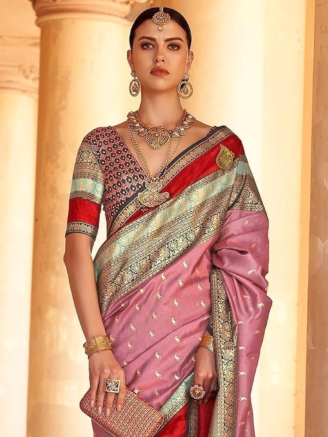Women’s Woven Design Peacock Print Silk Blend Saree with Unstitched Blouse Piece